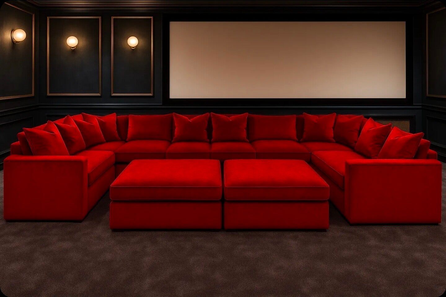 With its elegant lines, and symmetrical U-shape design, this sofa adds a touch of cinematic sophistication to any interior. Whether you’re designing a stylish media room or upgrading your lounge, this piece delivers both function and flair.